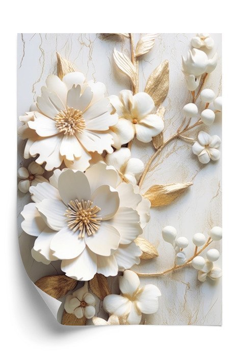 • Plakat Białe Kwiaty Na Drewnianym Stole