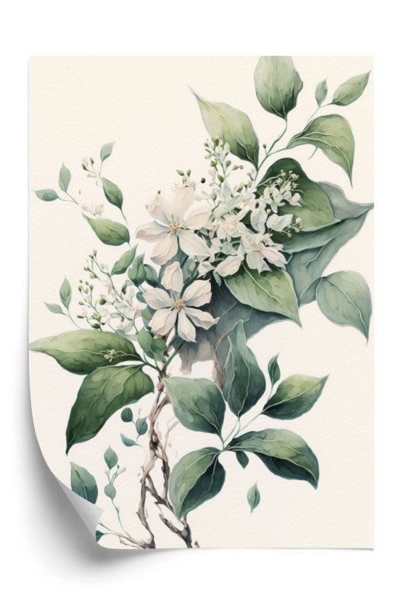 Plakat Białe Kwiaty Na Zielonej Gałązce