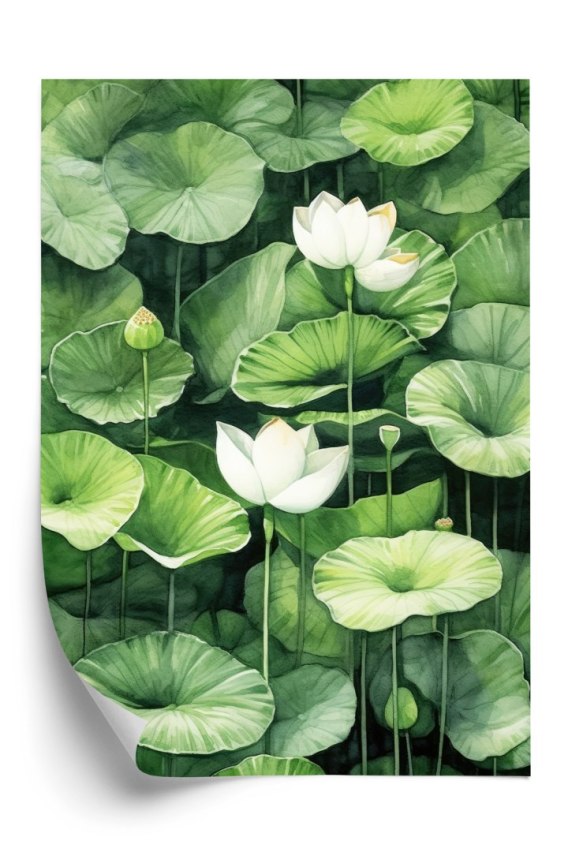 • Plakat Białe Kwiaty Wśród Zielonych Liści Lotos