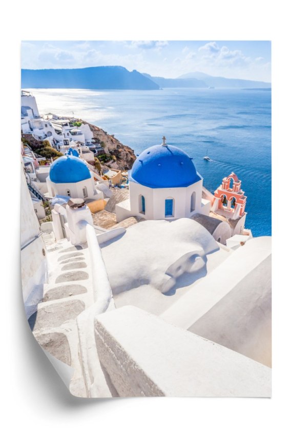Plakat Biało Niebieska Architektura Miasteczka Oia