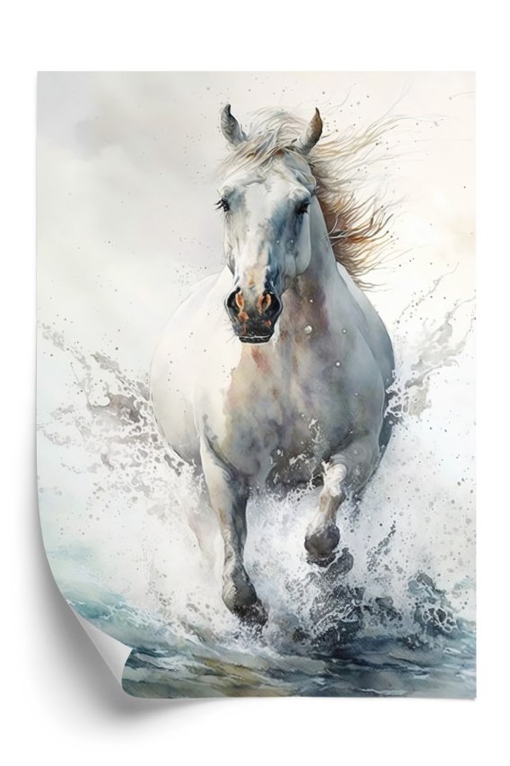 • Plakat Biały Koń Galopujący W Wodzie