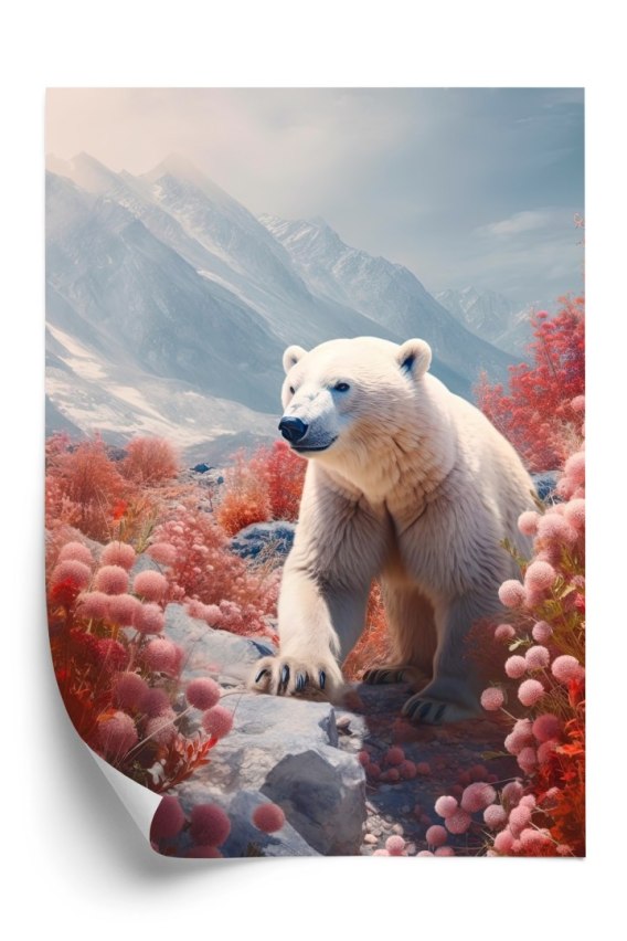 • Plakat Biały Niedźwiedź Wśród Kwiatów