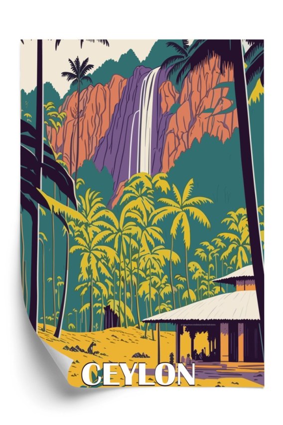 Plakat Cejlon Retro Krajobraz Z Wodospadem