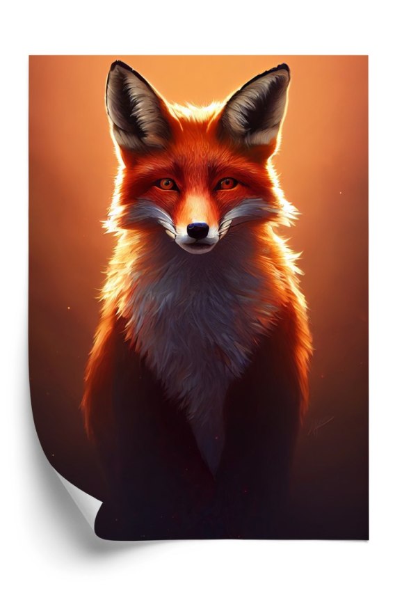 Plakat Colorful Vibrant Fox Portrait. Digital Art.
