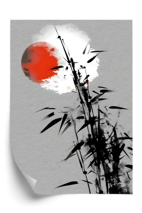 Plakat Czarny Bambus I Czerwone Słońce
