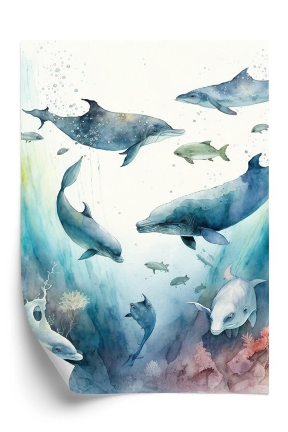 Plakat Delfiny W Morskiej Głębi Akwarela