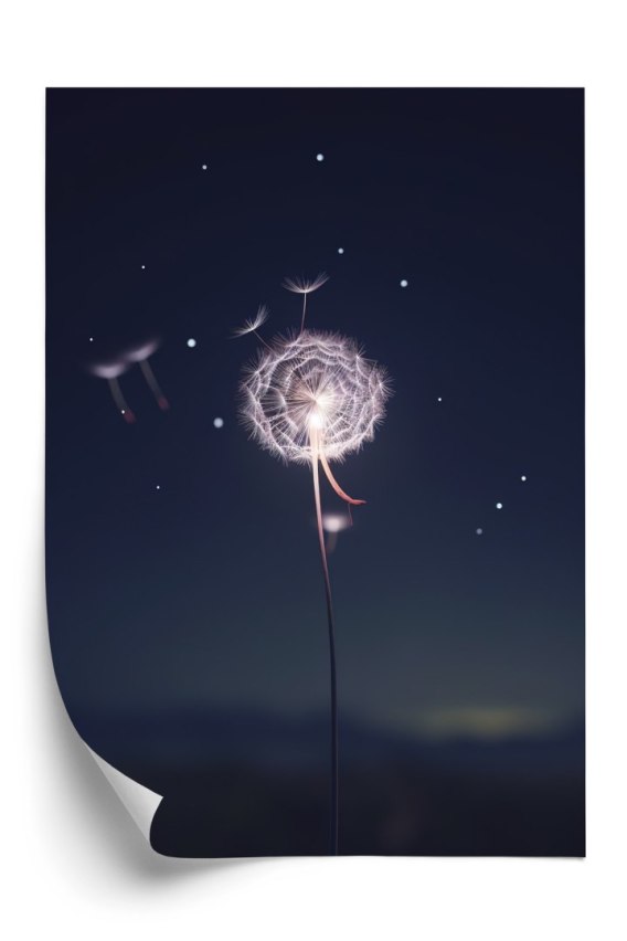 Plakat Delikatny Mniszek Lekarski Na Tle Nocnego Nieba