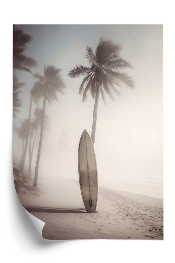 Plakat Deska Surfingowa Na Plaży Z Palmami