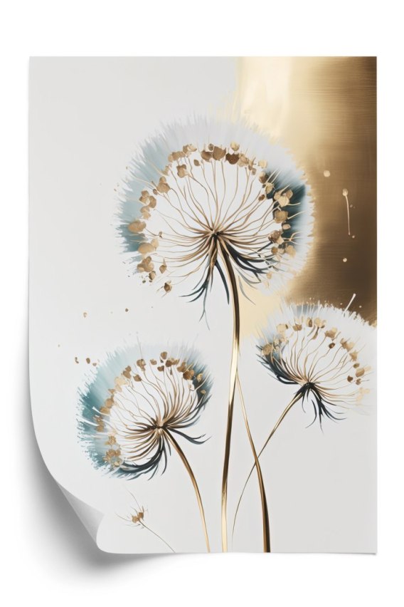 • Plakat Dmuchawce Na Jasnym Tle Ze Złotem