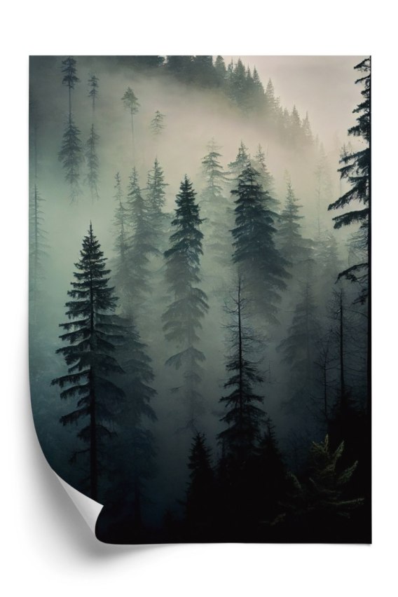 Plakat Drzewa W Mglistym Lesie