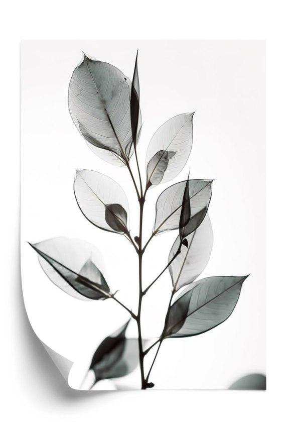 Plakat Gałązka Z Szarymi Liśćmi Na Jansym Tle