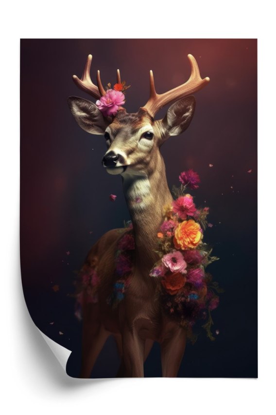 Plakat Jeleń Ozdobiony Kwiatami
