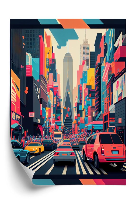 Plakat Kolorowe Auta Na Ulicy Nowego Jorku Abstrakcja