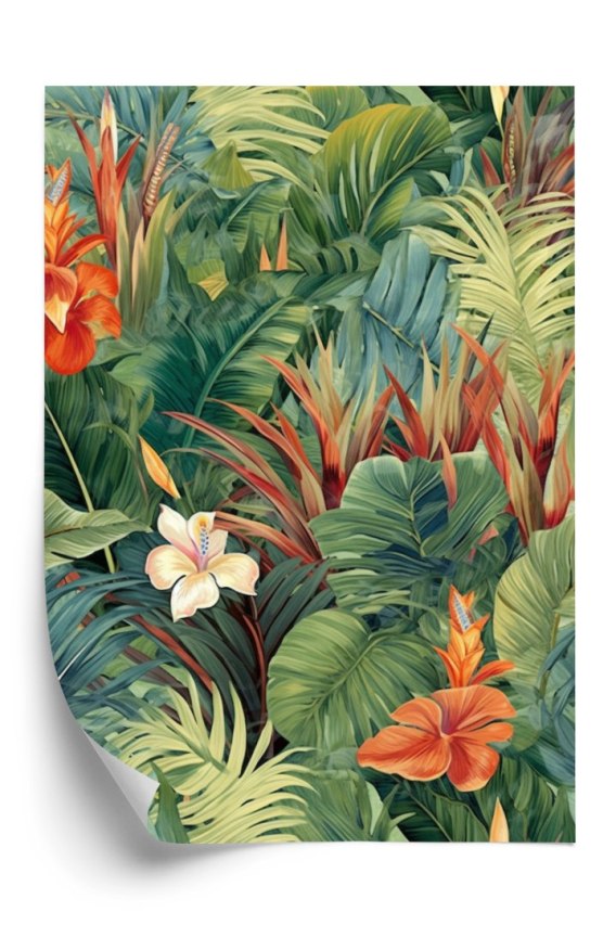 Plakat Kolorowe Rośliny I Kwiaty Tropikalny Wzór