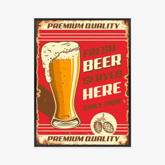 Plakat Kufel Piwa I Napisy W Stylu Vintage Rama Aluminiowa Kolor Czarny