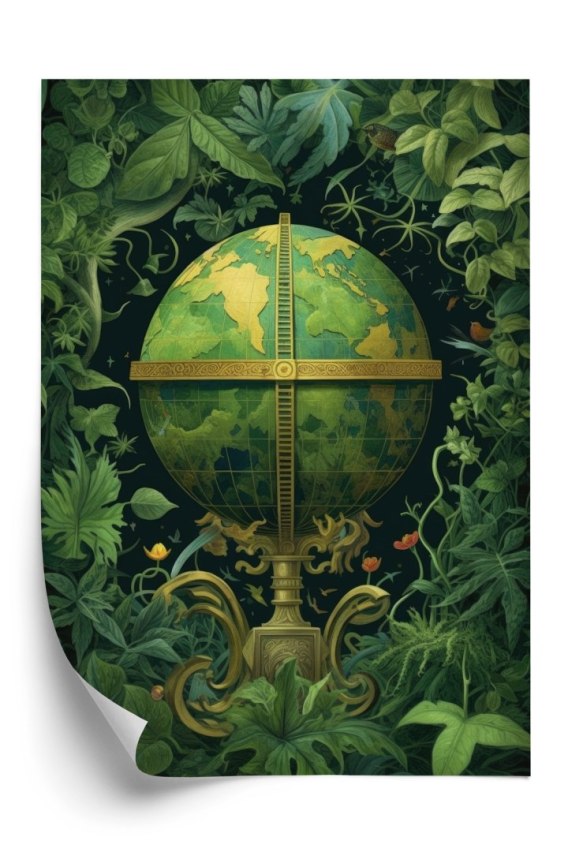 Plakat Kula Ziemska Z Zielonymi Liśćmi Jako Symbol Natury