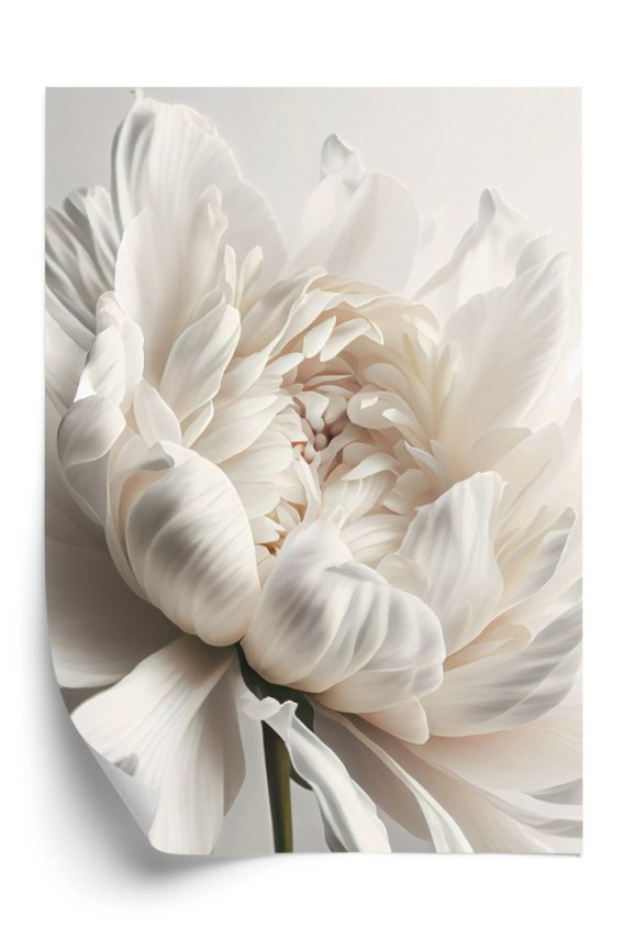 Plakat Kwitnąca Biała Piwonia Z Bliska