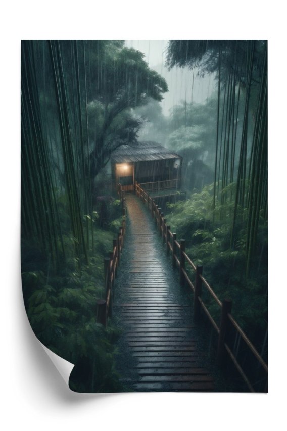 Plakat Las Bambusowy Z Dom Z Bambusa