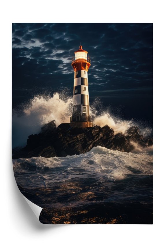 Plakat Latarnia Morska I Wzburzone Morze W Nocy