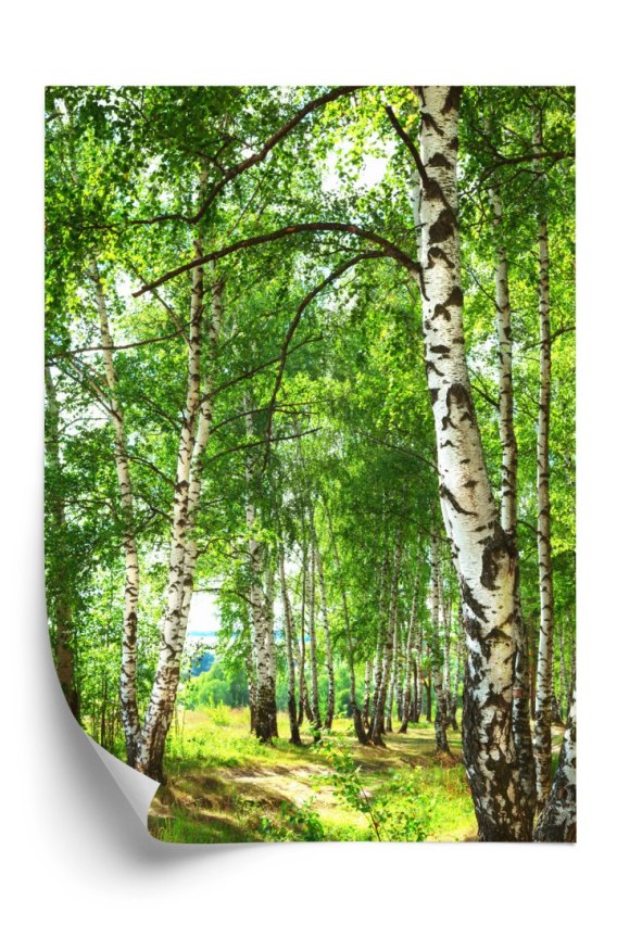 Plakat Letni Poranek W Słonecznym Lesie Brzozowym