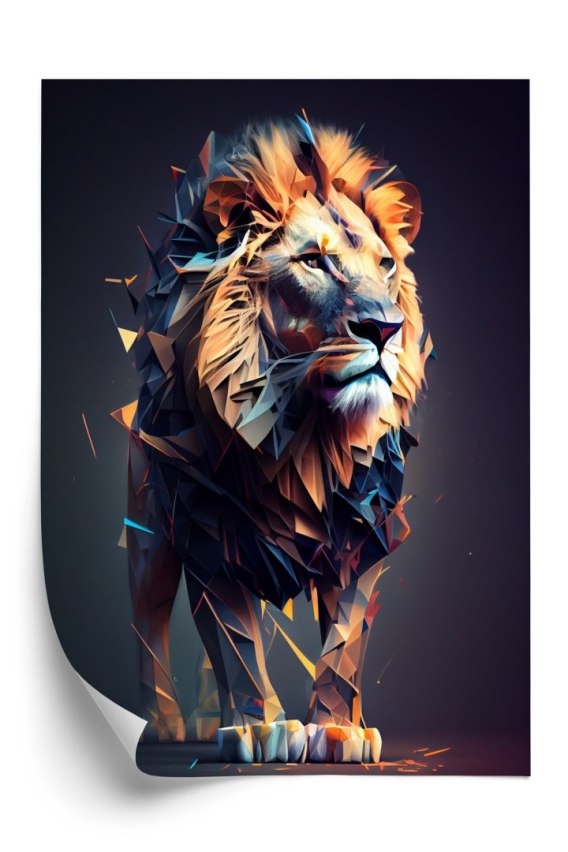 • Plakat Lew W Geometrycznym Stylu