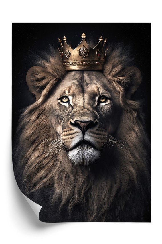 Plakat Lew W Koronie Na Realistycznym Portrecie
