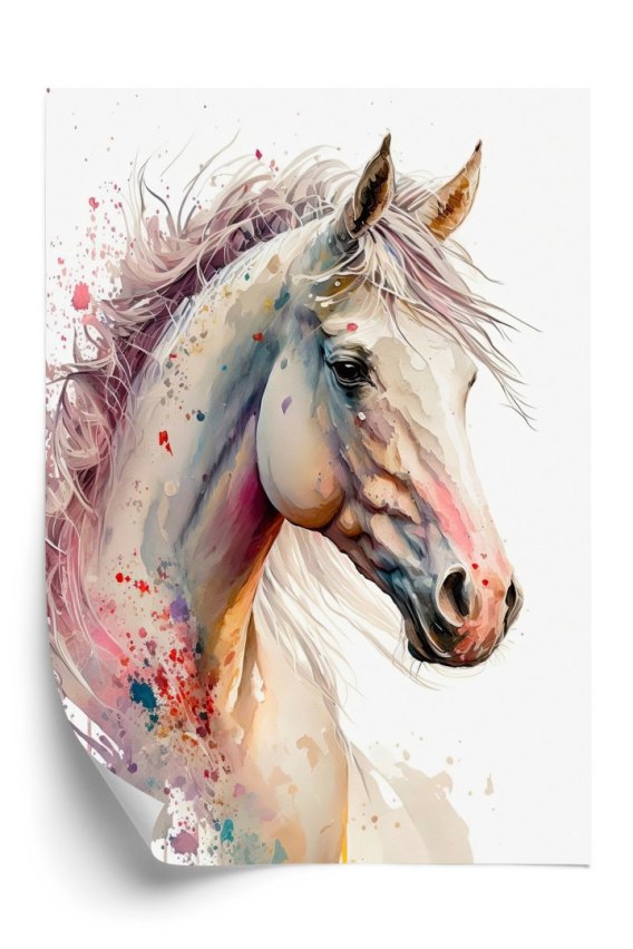 Plakat Malowany Portret Konia W Białym Kolorze