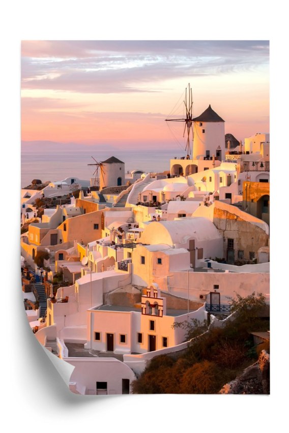 • Plakat Malowniczke Miasteczko Oia O Zachodzie Słońca