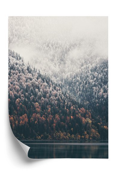 Plakat Mglisty Jesienny Las Nad Jeziorem