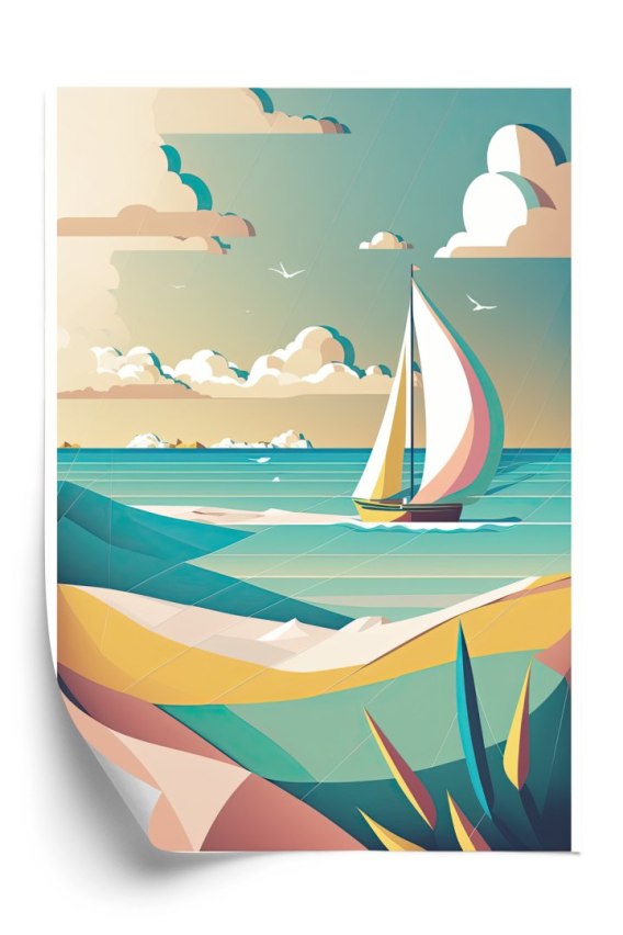 Plakat Morski Krajobraz Z Żaglówką Abstrakcja