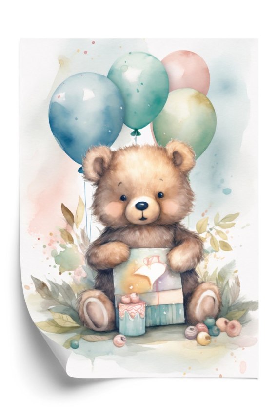 • Plakat Niedźwiadek Z Pękiem Balonów