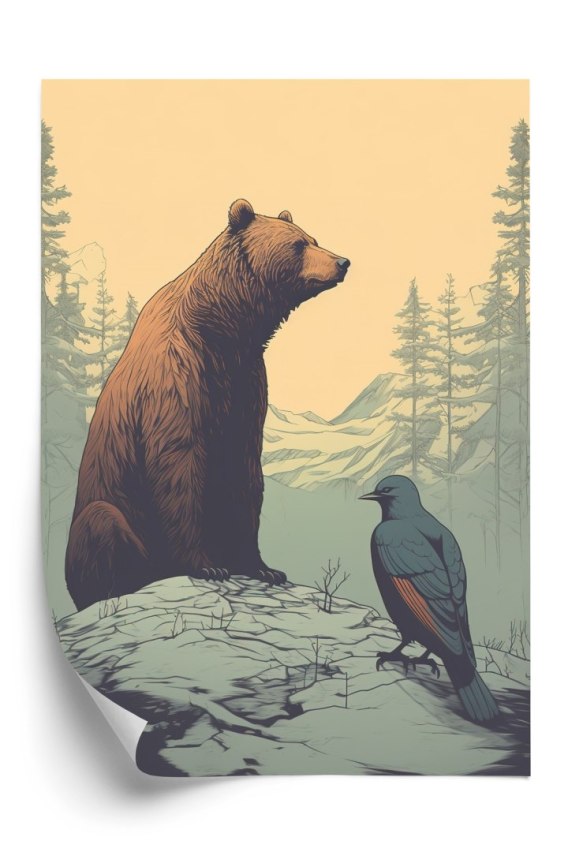 Plakat Niedźwiedź Brunatny Na Tle Śnieżnych Wzgórz