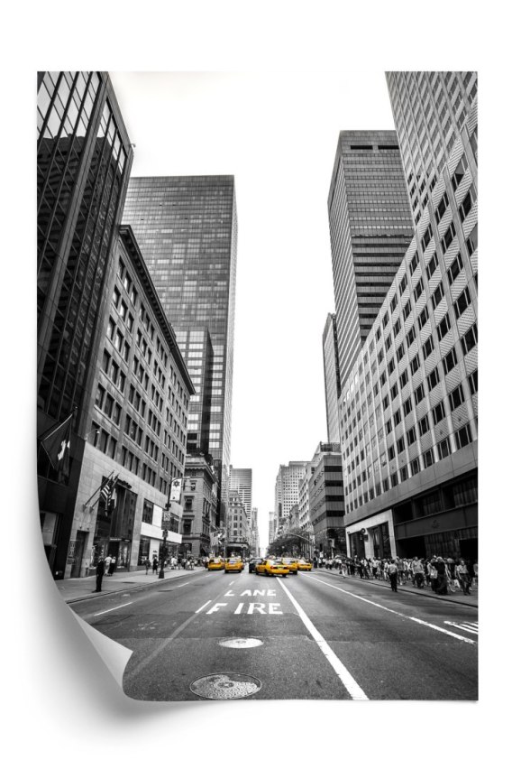Plakat Nyc Żółte Taksówki Na Czarno Białej Ulicy