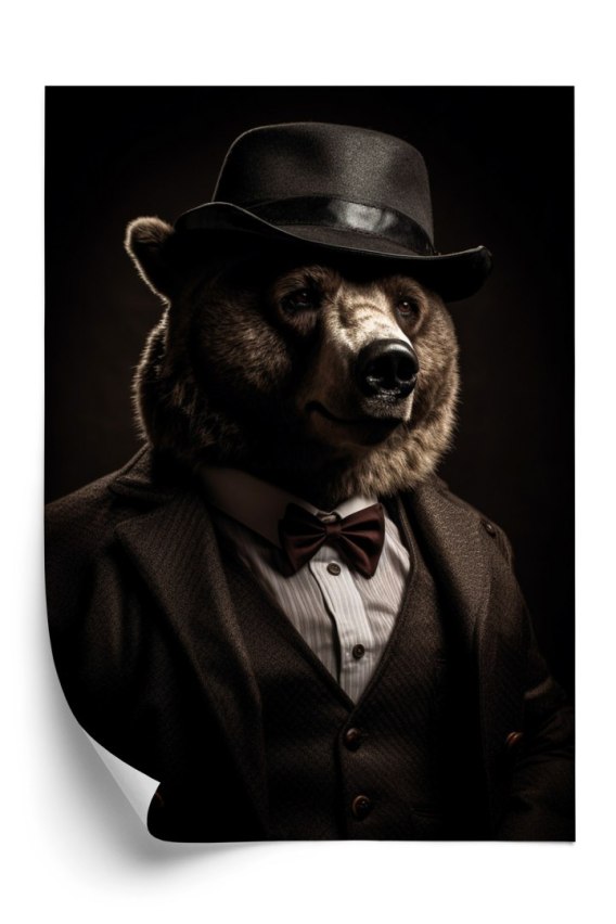 Plakat Portret Niedźwiedzia W Garniturze I Kapeluszu