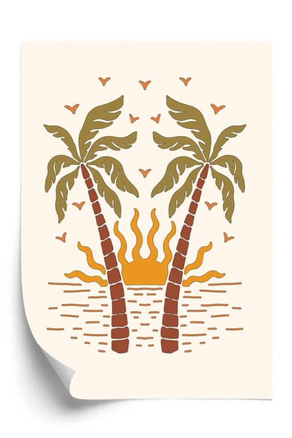 • Plakat Rerto Palmy I Zachodzące Słońce