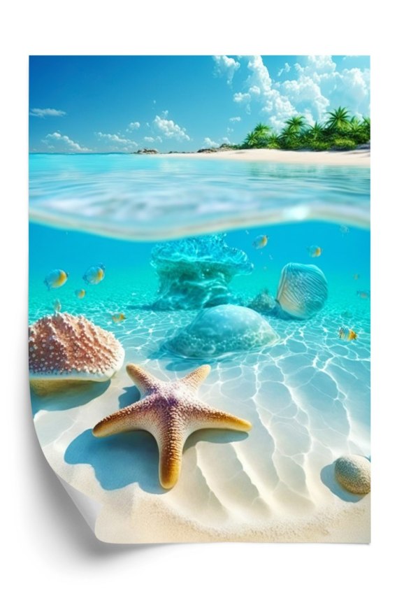 Plakat Rozgwiazda Muszle I Ryby W Krystalicznym Morzu
