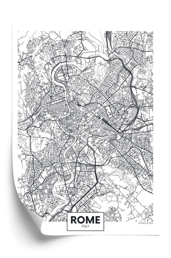 • Plakat Rzym Czarno Biała Mapa Miasta