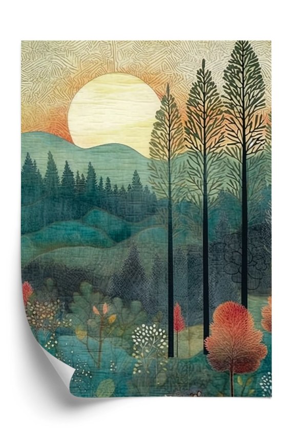 Plakat Słońce Nad Leśnym Krajobrazem Abstrakcja
