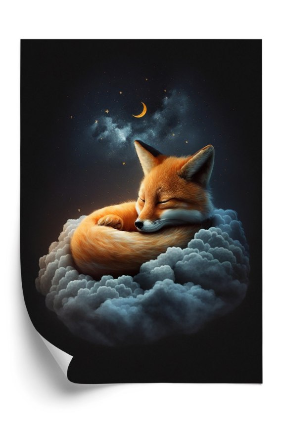 • Plakat Śpiący Lisek Na Chmurce