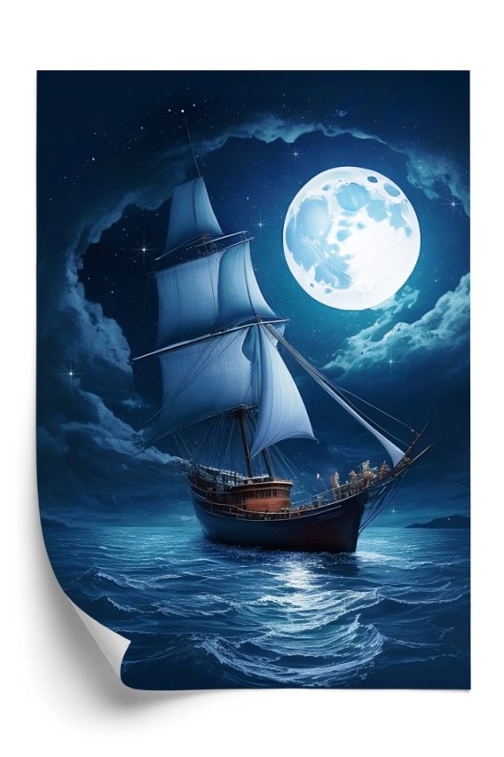 Plakat Statek Na Spokojnym Morzu I Pełnia Księżyca