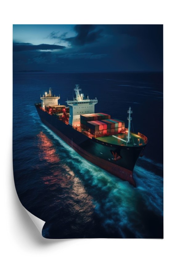 Plakat Statek Towarowy Na Morskich Wodach Nocą