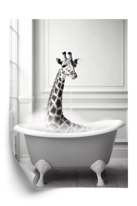 • Plakat Surrealistyczna Ilustracja Z Żyrafą W Wannie
