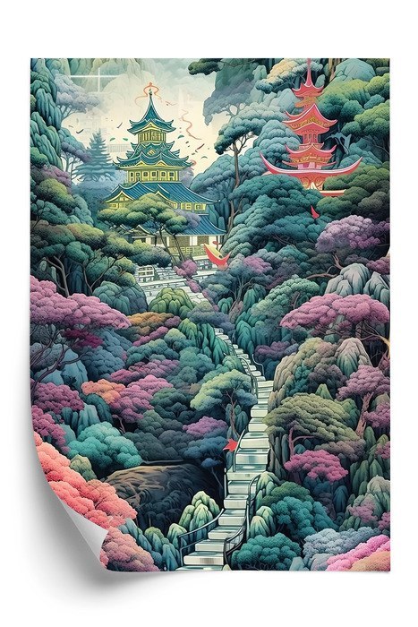 Plakat Tajemnicza Świątynia I Bujna Kolorowa Roślinność