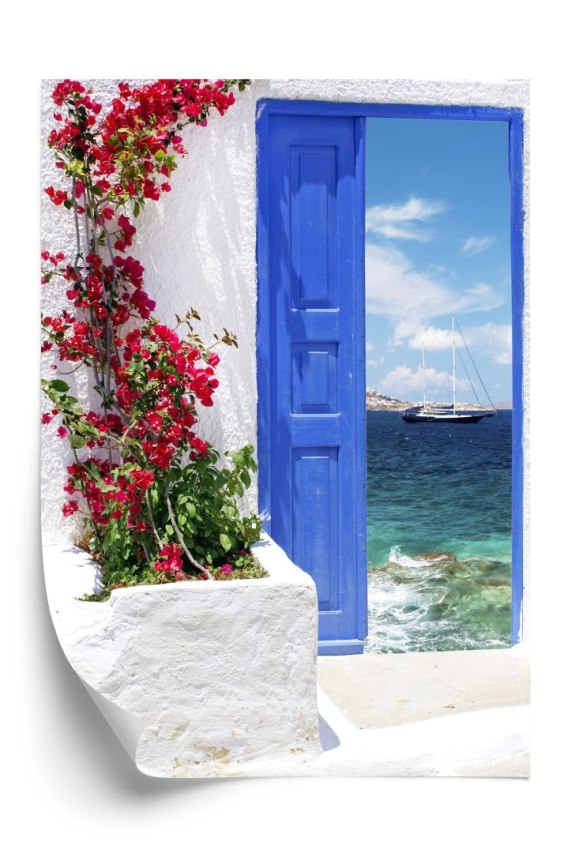 • Plakat Tradycyjne Greckie Drzwi Z Widokiem Na Morze