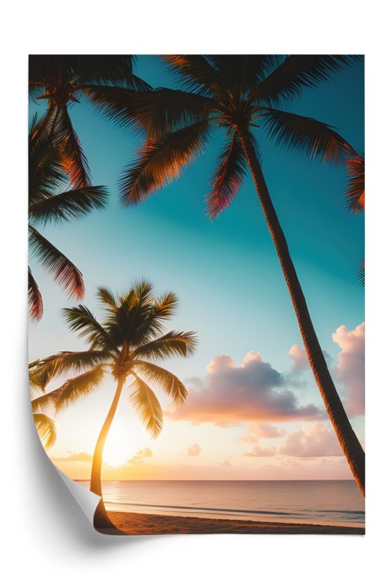 • Plakat Tropikalna Plaża Z Palmami O Zachodzie Słońca