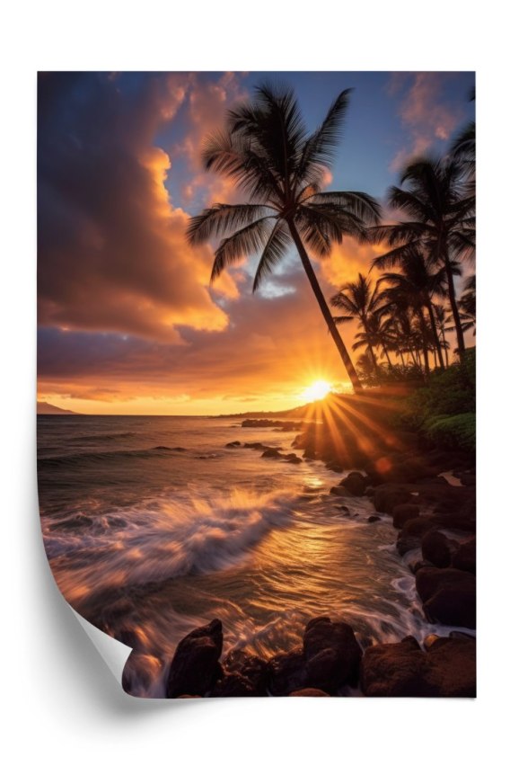 Plakat Tropikalna Wyspa Z Palmami I Zachód Słońca