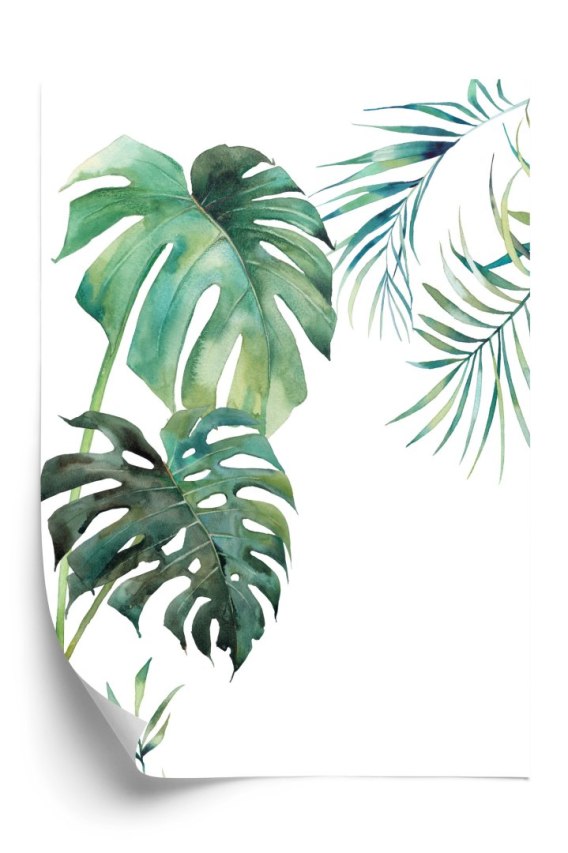 • Plakat Tropikalny Wzór Z Liśćmi Palmy I Monstery Akwarela