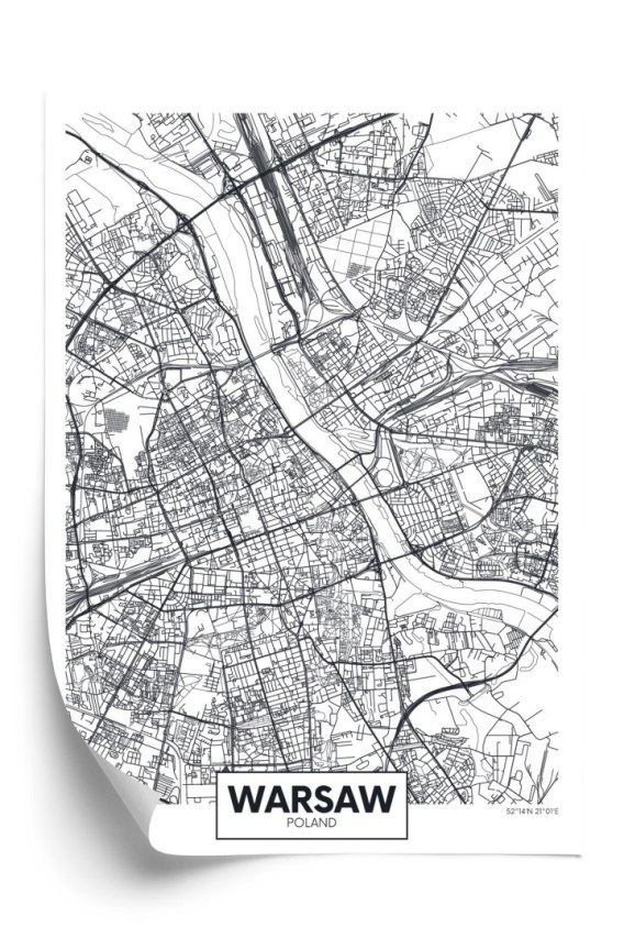 Plakat Warszawa Czarno Biała Szczegółowa Mapa Miasta
