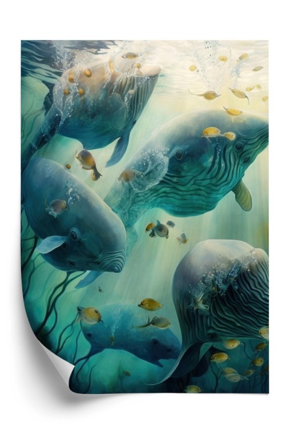 Plakat Wieloryby W Morskiej Głębi Akwarelowy Krajobraz
