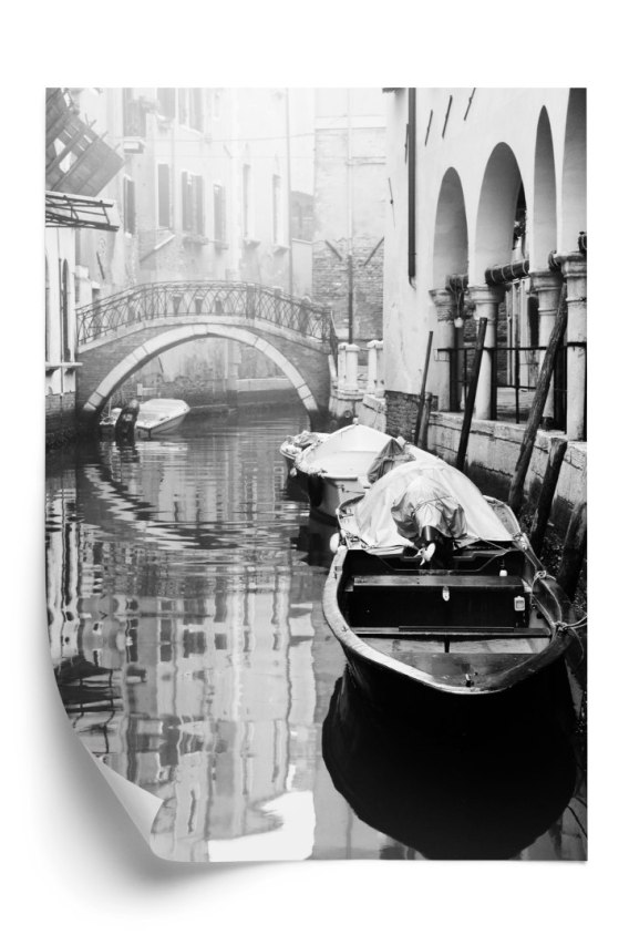 Plakat Włoska Wenecja Z Gondolami W Czerni I Bieli